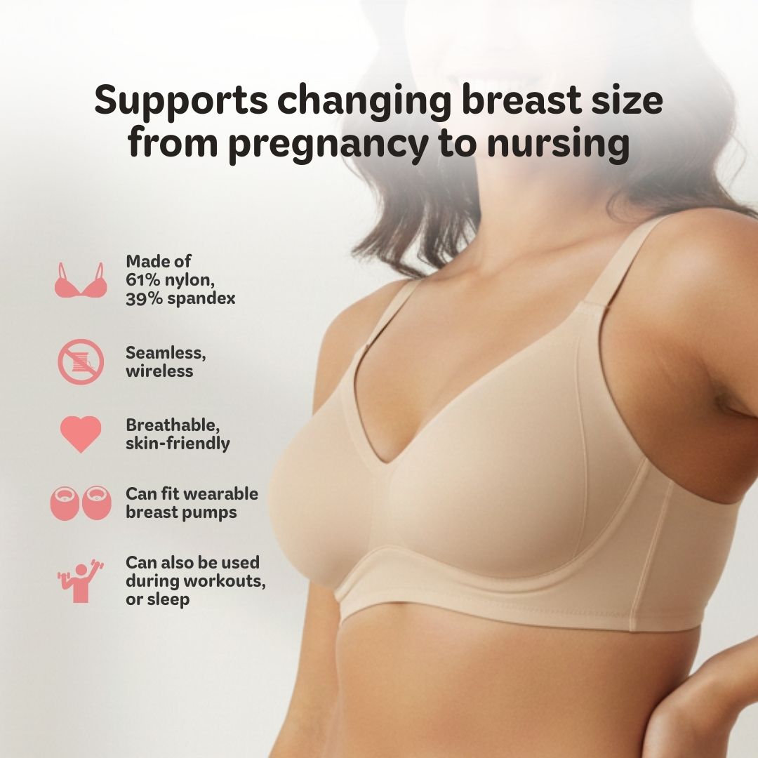 • Adapts to changing breast size from pregnancy to breastfeeding